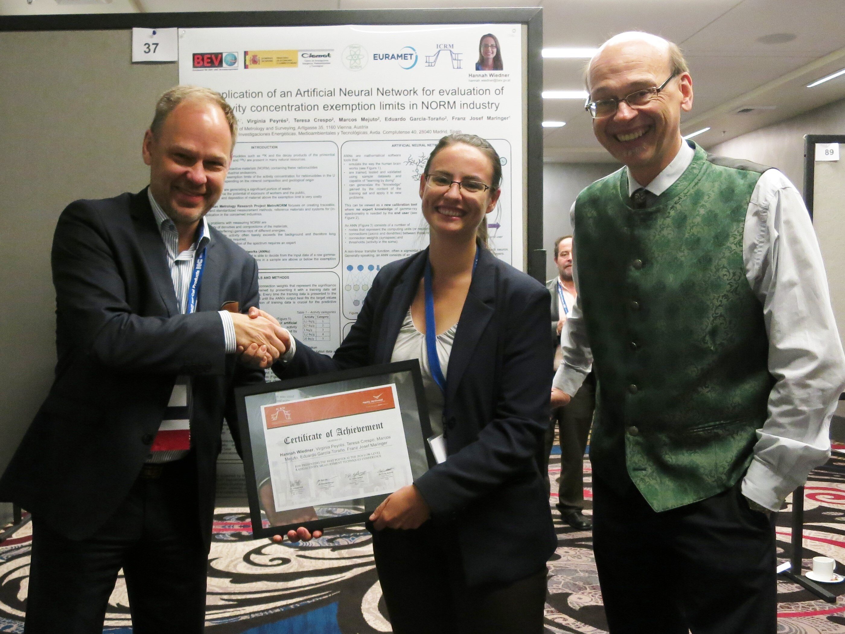 Work on the measurement of naturally occurring radionuclides carried out in EMRP project recognised at the ICRM LLRMT 2016 conference more