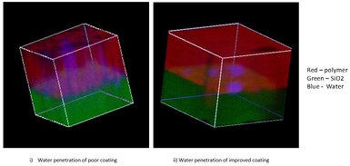 Figure demonstrating improved coating performance after immersion in water