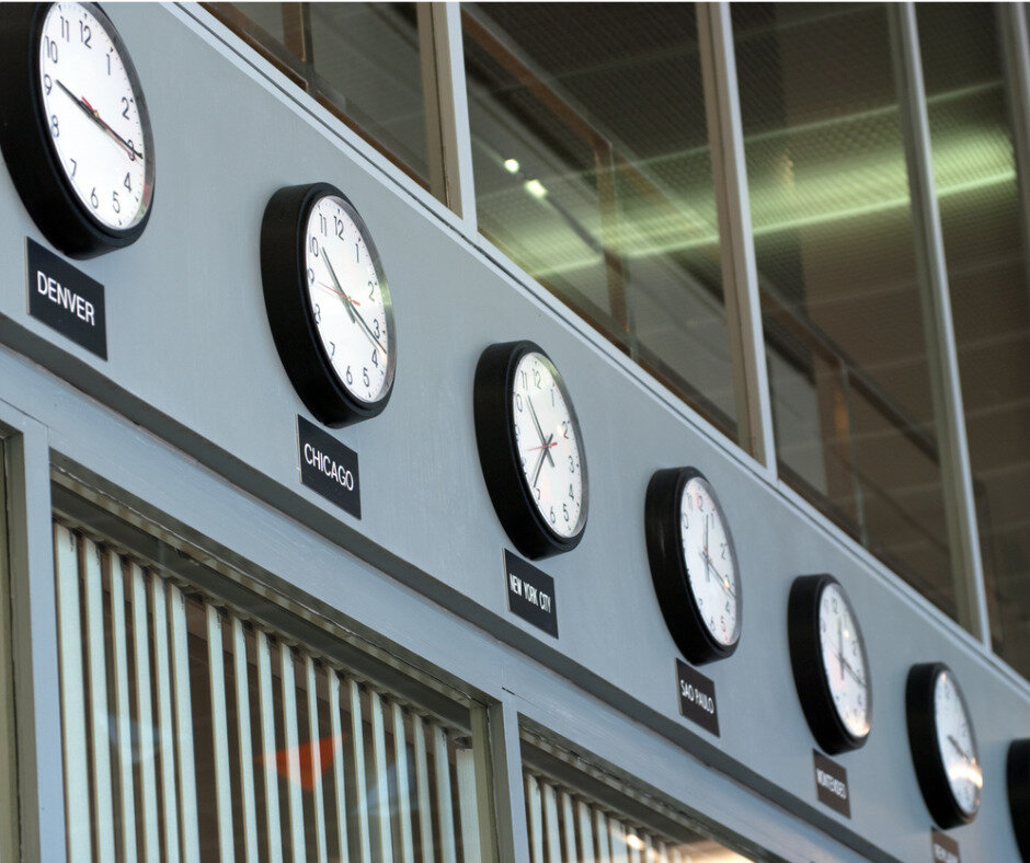 International clocks inside of an airport